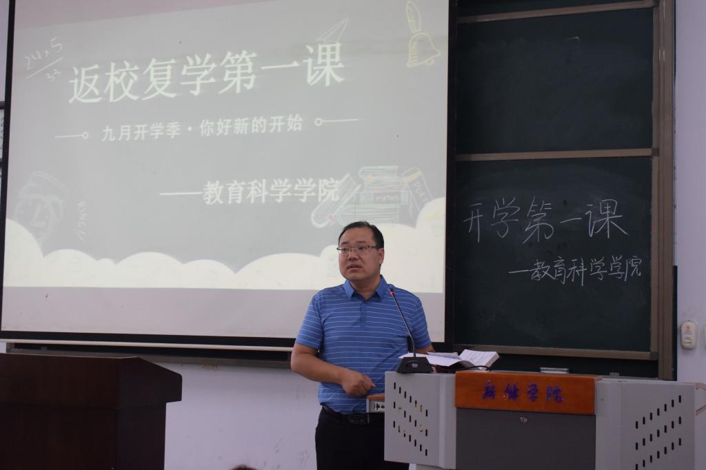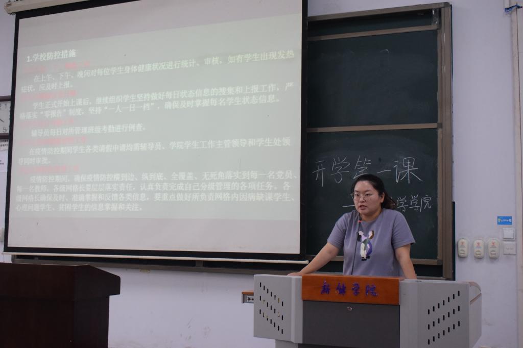 9月20日下午3点在A11-225教室开展“返校复学第一课”,由公司党委书记吕明哲老师主讲,党委副书记李彦老师及辅导员老师参加。根据返校第一课的教学安排,全体师生共同观看“开学第一课”教育宣传片、开展“控疫情,防诈骗”主题班会。在活动开展过程中,吕明哲老师、李彦老师分别代表球王会体育对同学们的返校复学表示热烈欢迎,强调“认真学习,抓好落实”的同时并勉励大家在今后的老员工活里继续乘风破浪,谱写自己的大学新篇章。赵然老师作为辅导员老师代表,叮嘱大家在注意身体健康的同时也要提高警惕,防止诈骗事故的发生。整个活动过程中,老师们热情亲切的讲解,同学们认真的听讲,师生交流气氛融洽。“返校复学第一课”在全体师生合唱《我和我的祖国》这一歌声中圆满结束。9月22日下午3点,公司党委组织全体教工“返校复学第一课”进行学习。