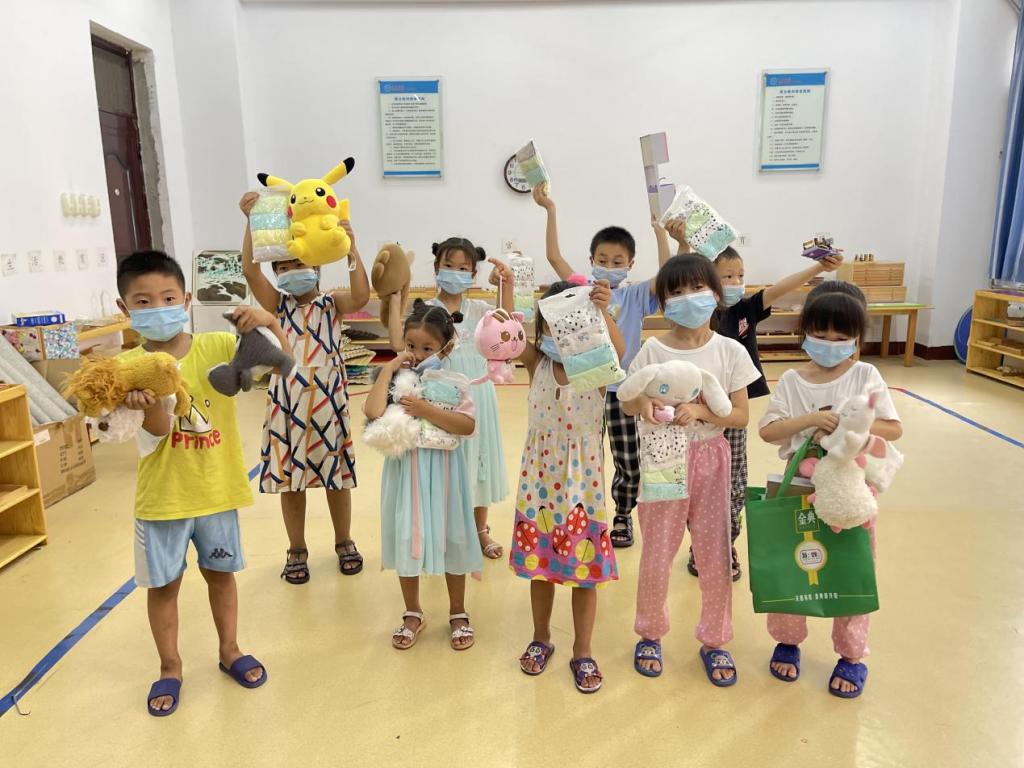 “老师,我真的可以拿走玩具吗?”“老师,我想拿两个,一个给我自己,一个给我妹妹,可以么?”当志愿者老师告诉孩子们,可以将布偶娃娃带回家时,孩子们的眼睛都亮了,一个一个像小鸟一样欢快,说话的声音就像在唱歌。