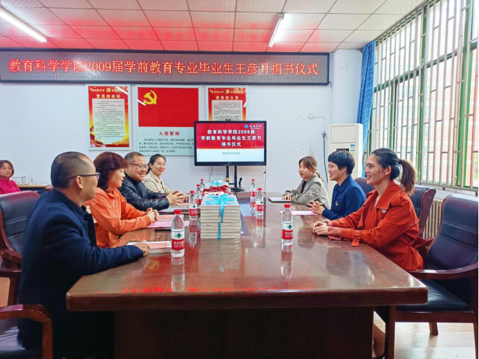 10月10日上午,球王会体育2009届学前教育专业毕业生王彦月捐书仪式在A11-0203会议室举行。郑州高新区艾瑞德国际幼儿园园长王彦月一行,公司党委书记吕明哲、经理杜丽娟、副书记李彦、副经理但柳松以及学前教育专业部分师生出席捐书仪式,仪式由但柳松副经理主持。