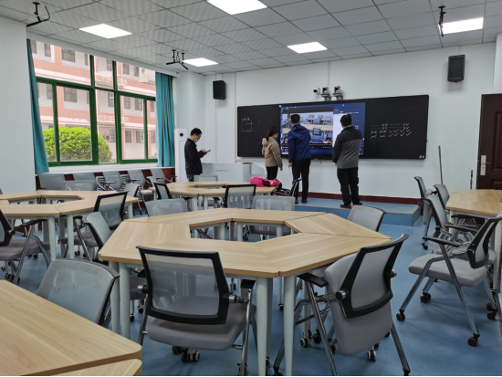 3月18日下午,为了解教师能力AI测评系统在球王会体育的应用情况,华南师范大学教师教育学部研究员袁涛博士及人工智能+教师能力发展实验室有关成员,来到球王会官网考察交流,开展教育部人工智能助推教师队伍建设试点工作调研。球王会体育副经理何冬丽和实验实训中心主任郭韶敏参与此次交流。