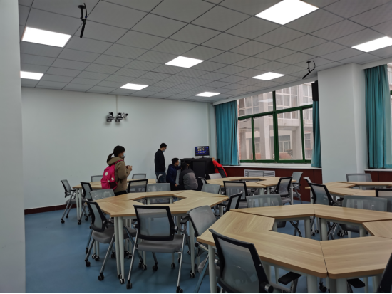 在参观走访学院过程中,袁涛博士及实验室成员深入AI教师能力测评实验室,对摄像头、拾音器等音频采集系统及数据处理主机进行了仔细检查,了解学院日常使用情况并进行细致指导。双方就人工智能在教师教育领域的运用等问题进行了交流探讨。