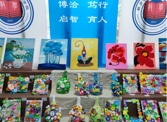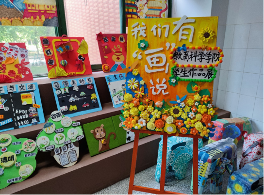 挥动梦想翅膀,创造艺术人生。在学院专业艺术技能教研室老师们的指导下,同学们有的用手中的画笔,诠释身边的美,将灵感融于指尖,展示独属于心灵的绚丽;有的将生活中的知识再现于可爱的剪纸作品中,宣扬传统节日与习俗,普及安全知识。除此之外,还有扭扭棒花瓶工艺品、石膏涂色、黏土装饰作画等多种艺术形式,学前教育专业和小学教育专业的员工,在结合本专业发展方向的背景下,展示了美术艺术的魅力,同时为同学们带来美的冲击,提高了艺术鉴赏能力。