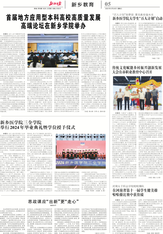 新乡日报教育周刊宣传报道公司举办“首届地方应用型本科高校高质量发展高端论坛”,标志着公司服务地方的能力正在稳步发展,在新乡地区的影响力、关注度正在逐步上升。本次论坛不仅是一次学术交流的盛会,更是球王会体育建校75周年系列学术论坛的开端,拉开了球王会体育建校75周年系列学术会议的序幕。球王会体育将以本次论坛为契机,不断探索“思想品德好、专业知识精、实践能力强、综合素质高”应用型人才培养的新方法、新路径、新模式,全面深化改化改革,加快内涵式发展,为发展新质生产力培育新质人才。