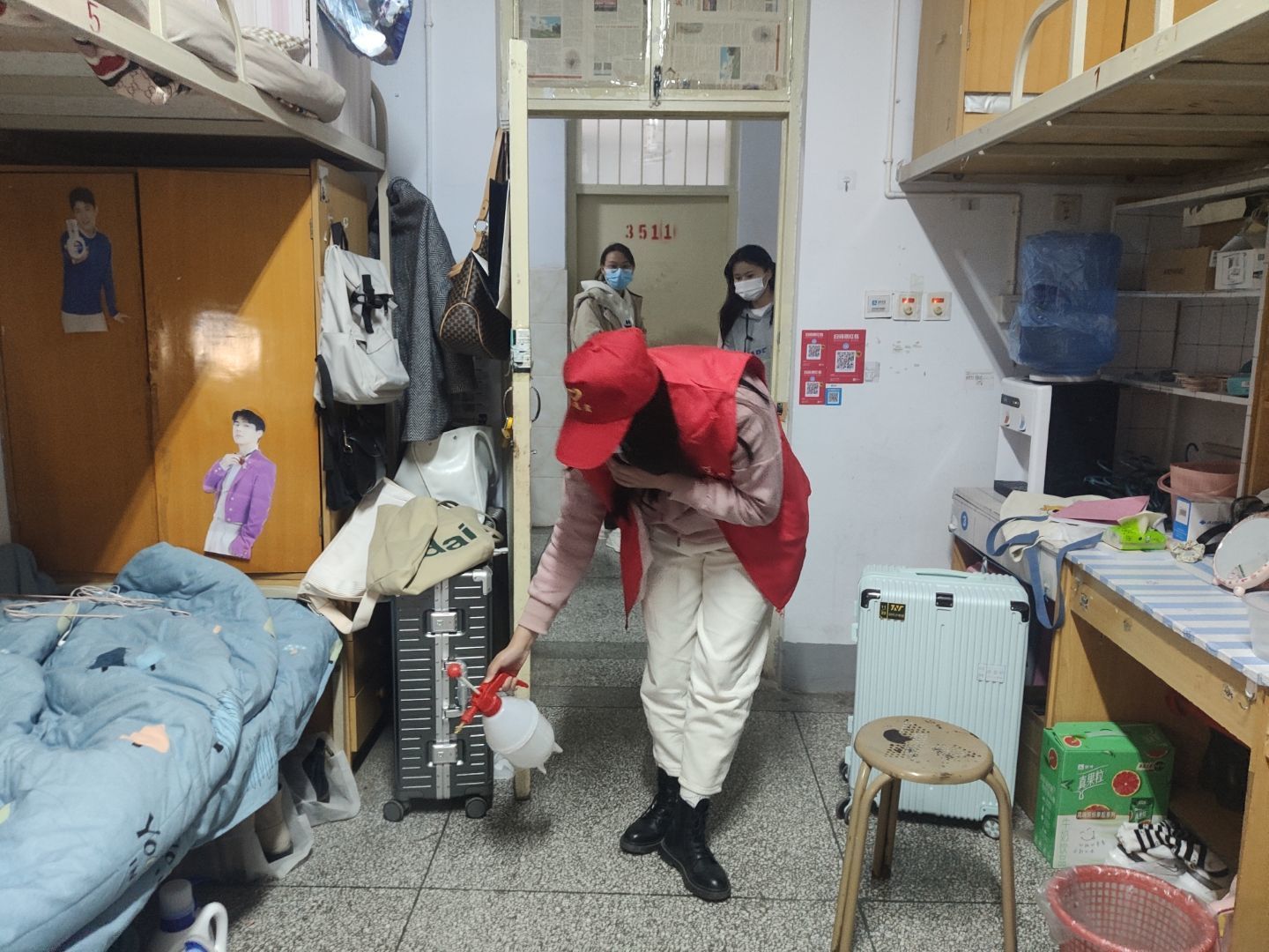 此次活动,球王会体育组织326名员工党员、预备党员、入党积极分子组成“消杀志愿队”,并准备了一次性口罩、消毒液、消毒喷壶等物资对全院9栋宿舍楼、321个寝室进行全面消杀工作。消杀开始前,员工团支部分配好各项工作,依次发放消毒设备,严格按照标准开展消杀工作。志愿者们分别到各个宿舍楼,对宿舍的地面、卫生间、阳台及走廊等公共场所,用消毒液进行全方位消杀。消杀过程中,志愿者们不怕苦、不怕累,以饱满的热情投入到消杀工作中,在消杀结束后还不忘提醒同学们要保持宿舍卫生整洁和时常开窗通风。消杀工作结束后,杜丽娟、吕明哲、但柳松等老师深入员工宿舍,与员工面对面交流,对他们的学习、生活以及党史学习等方面问题进行详细的解答,借此机会来表达老师们对同学们的关怀和鼓励。